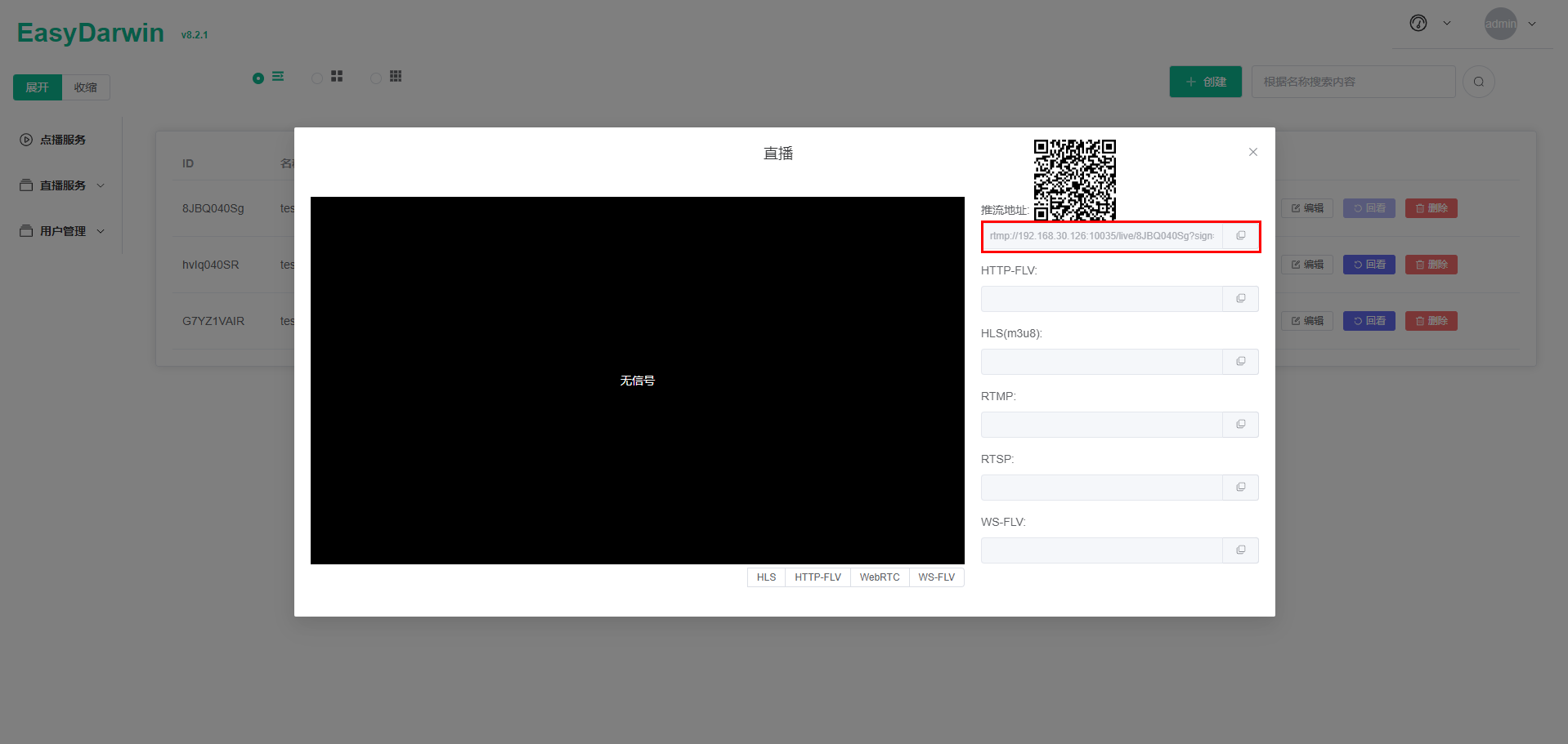 例如,我需要一个在线的rtsp/rtmp流地址推流到EasyDarwin的推流直播间。