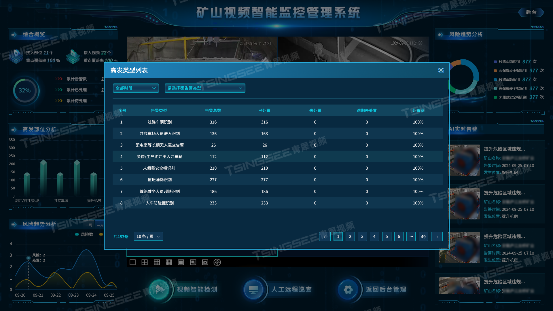 矿山项目场景使用岩石开挖设备,包括:铲运机和矿卡、露天钻机、掘进凿岩台车到爆破孔钻机和生产钻机等,致力于帮助矿场优化其整个生产工艺。在某矿山项目中,需要使用到爆破钻孔机,每辆车搭载7个高清监控摄像头,360°全方位监测车辆工作状态,现在需要将所有监控摄像头集中聚集管理,对钻头角度进行监测。