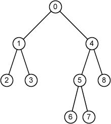 9 0 1 4 1 2 3 2 -1 -1 3 -1 -1 4 5 8 5 6 7 6 -1 -1 7 -1 -1 8 -1 -1