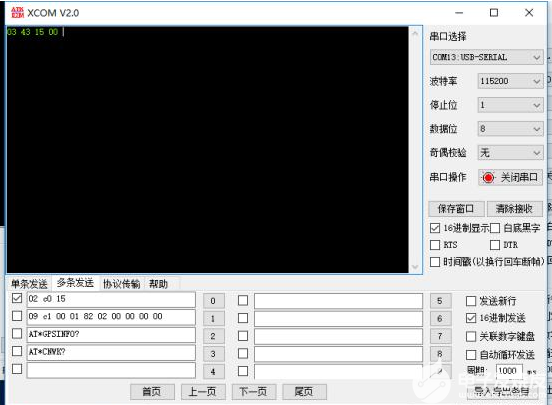 A)、初始化节点1,上电节点1串口发送02 c0 15,接收到03 43 15初始化成功。