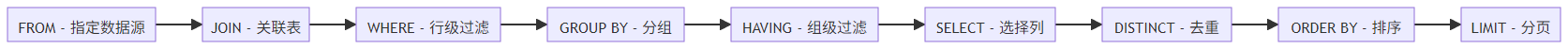 SELECT 语句的子句执行顺序与书写顺序不同,这是理解复杂查询的关键: