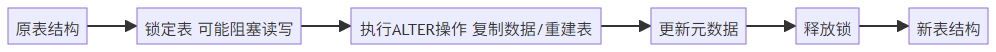 注意:大表 ALTER 操作可能导致长时间锁表,生产环境建议使用pt-online-schema-change等工具实现无锁变更。