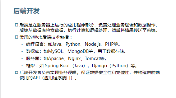 | Maven/Gradle | 依赖管理(pom.xml)、构建打包(mvn package)。 |