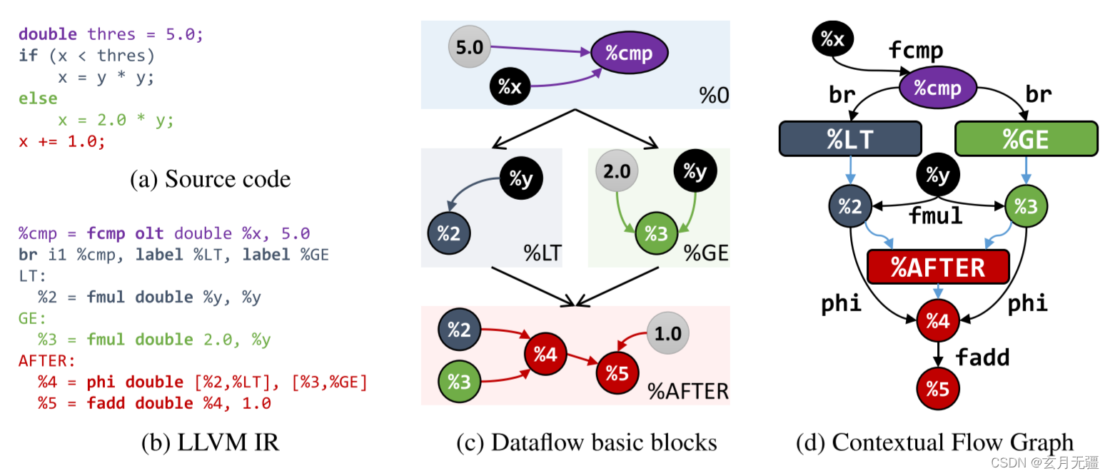 - 我们为代码制定了一个稳健的分布假设,从中我们得出了一种基于上下文流和 LLVM IR 的代码语句的新分布式表示。