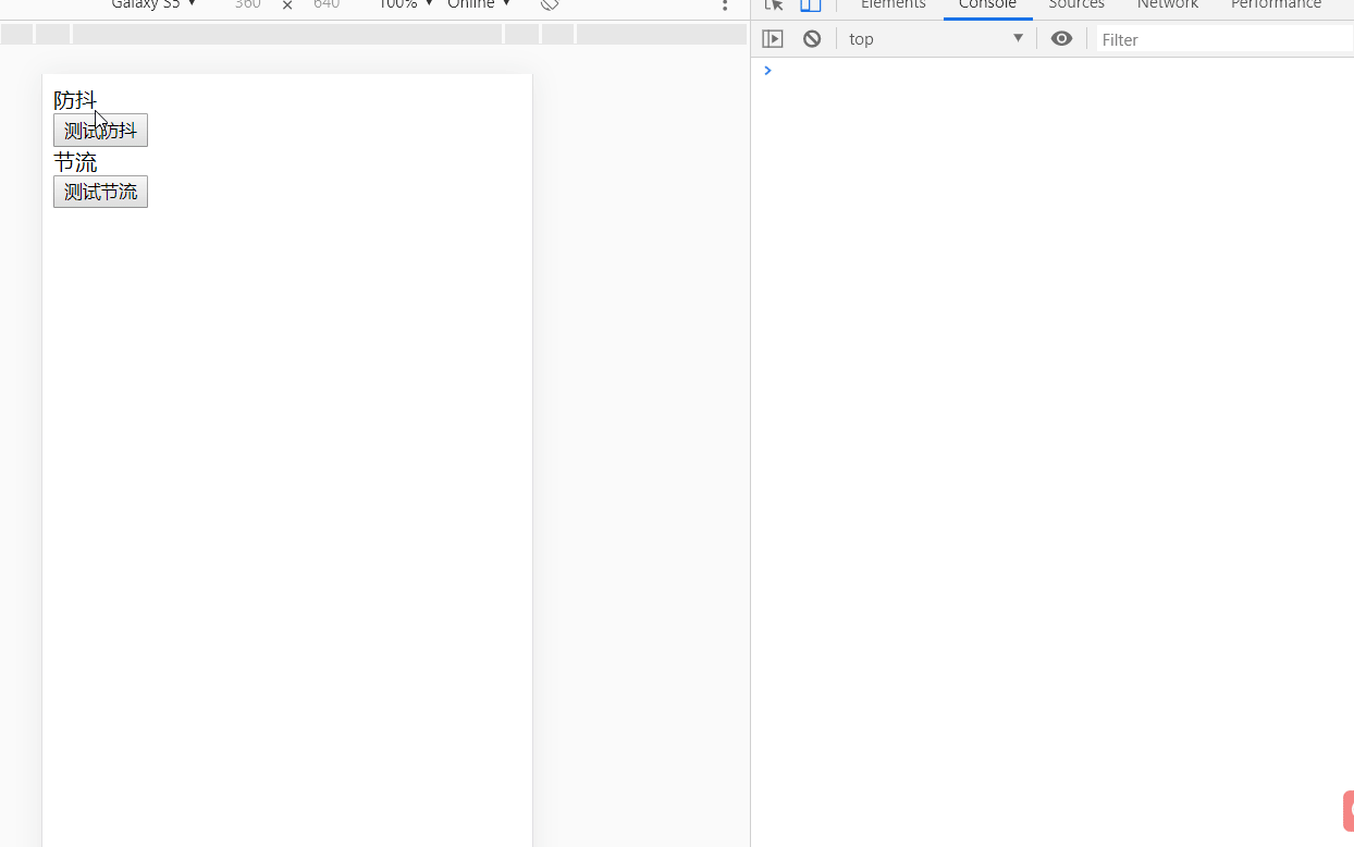 // 通俗来讲:所谓节流,就是指连续触发事件但是在 n 秒中只执行一次函数。 节流会稀释函数的执行频率。