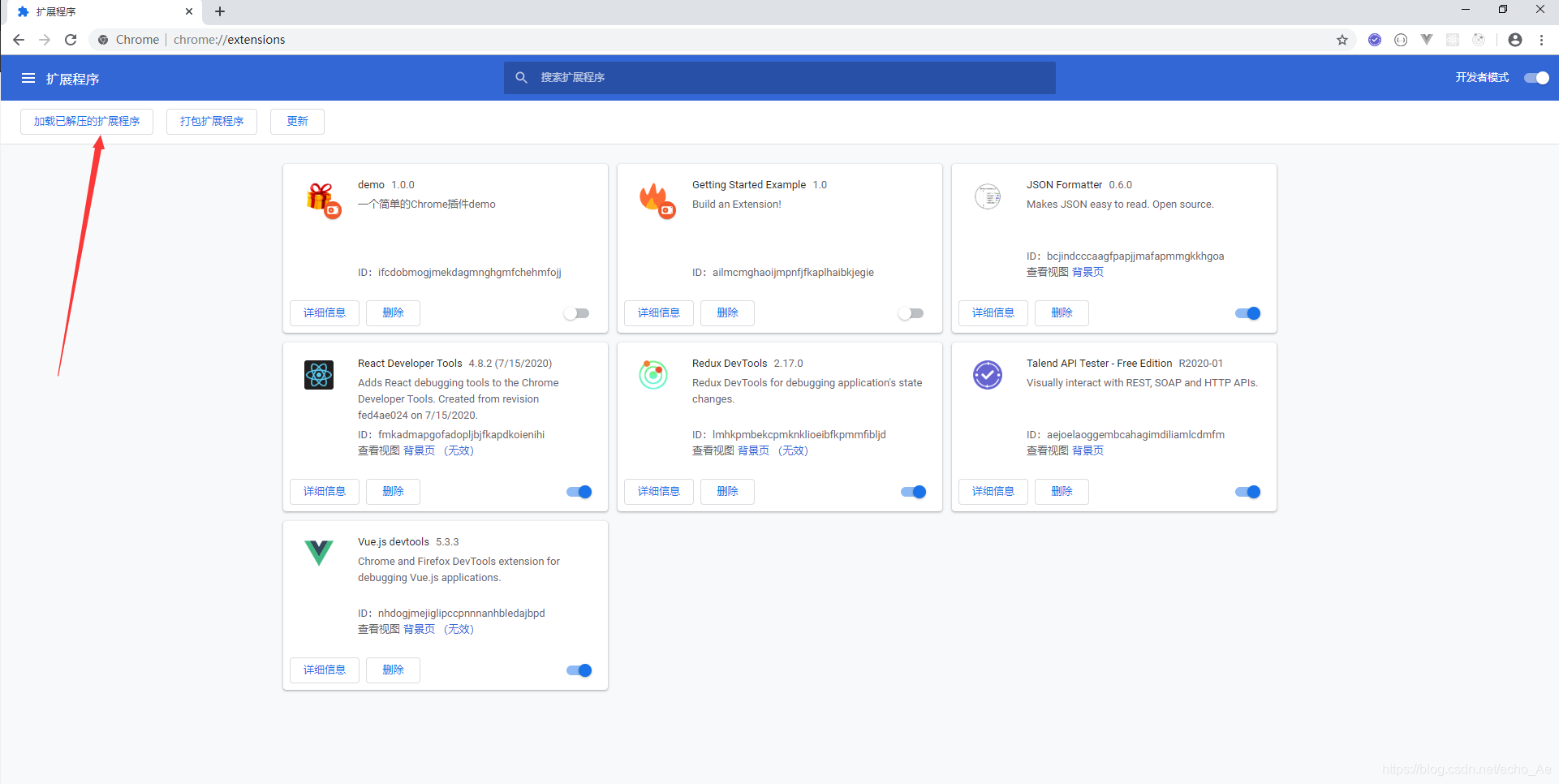 开启之后会有 加载已解压的扩展程序