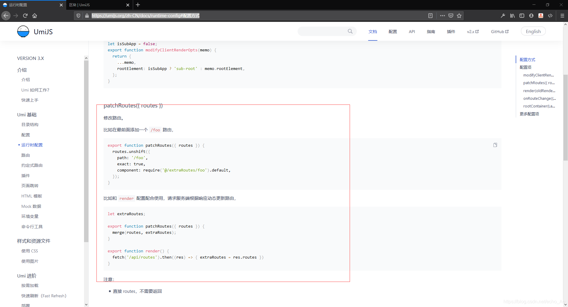 其实动态路由非常简单~实用umi框架之后,小伙伴们先来到umi文档运行时配置