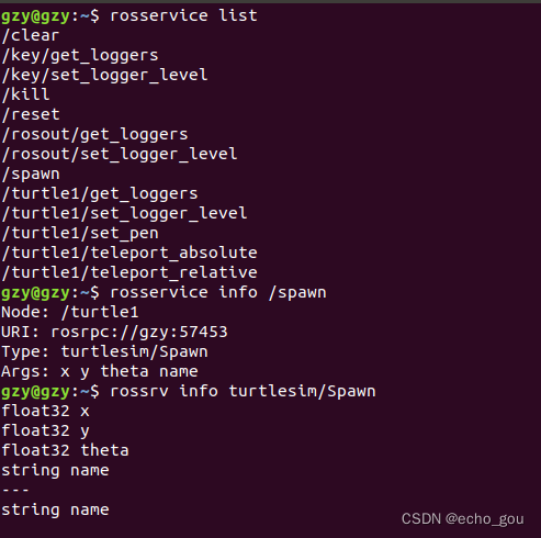 - 通过ros命令获取服务与服务消息信息。