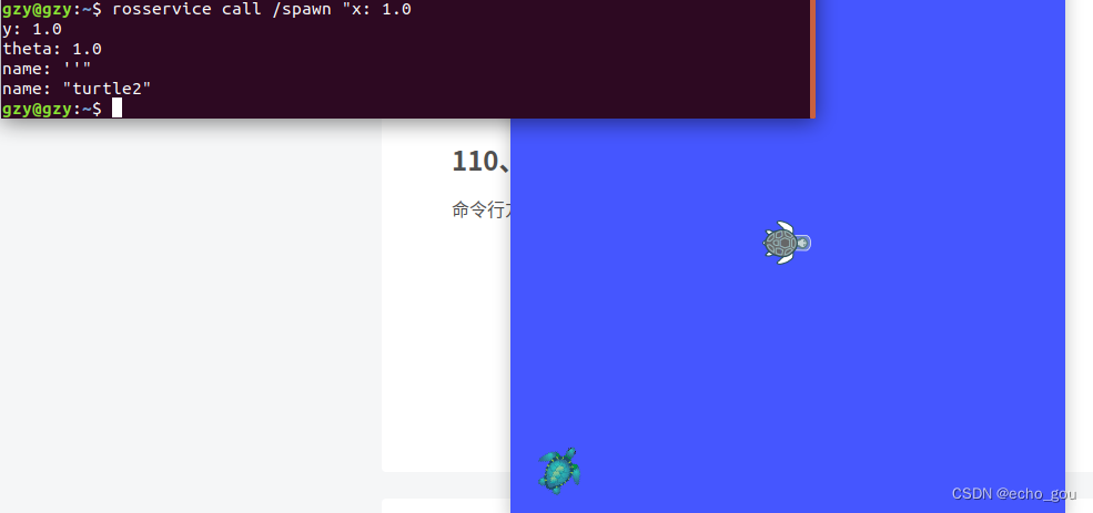 命令行方式:输入rosservice call /spawn点回车即可