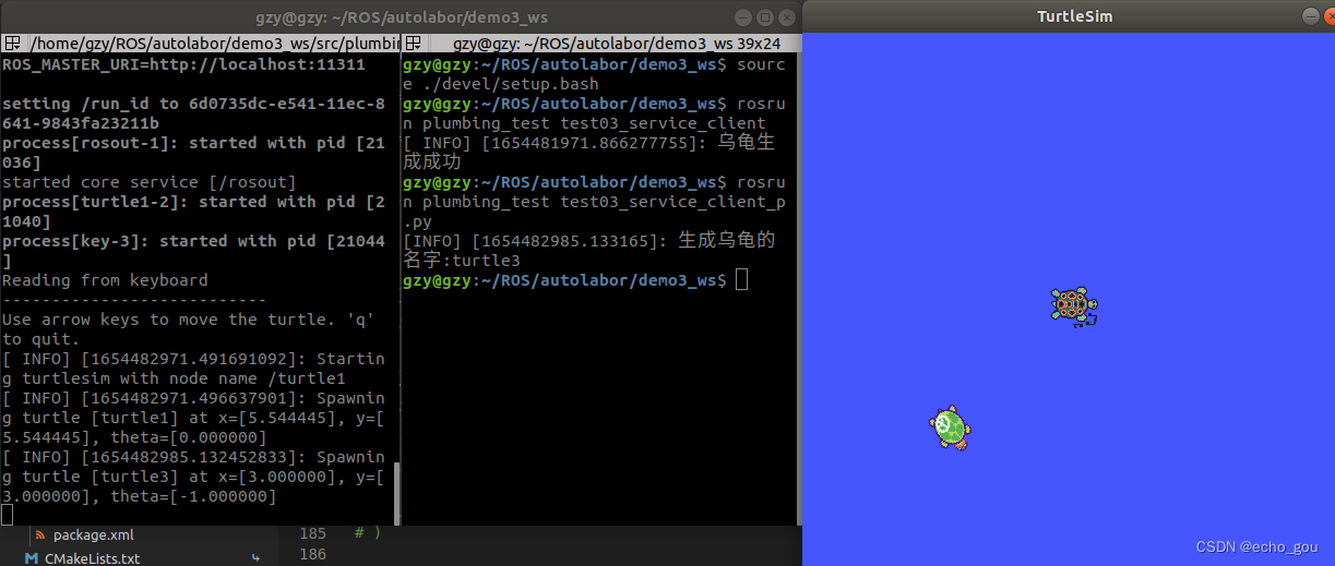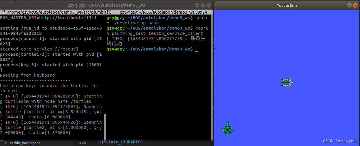 - 启动 roscore、turtlesim_node 、乌龟生成节点,生成新的乌龟。