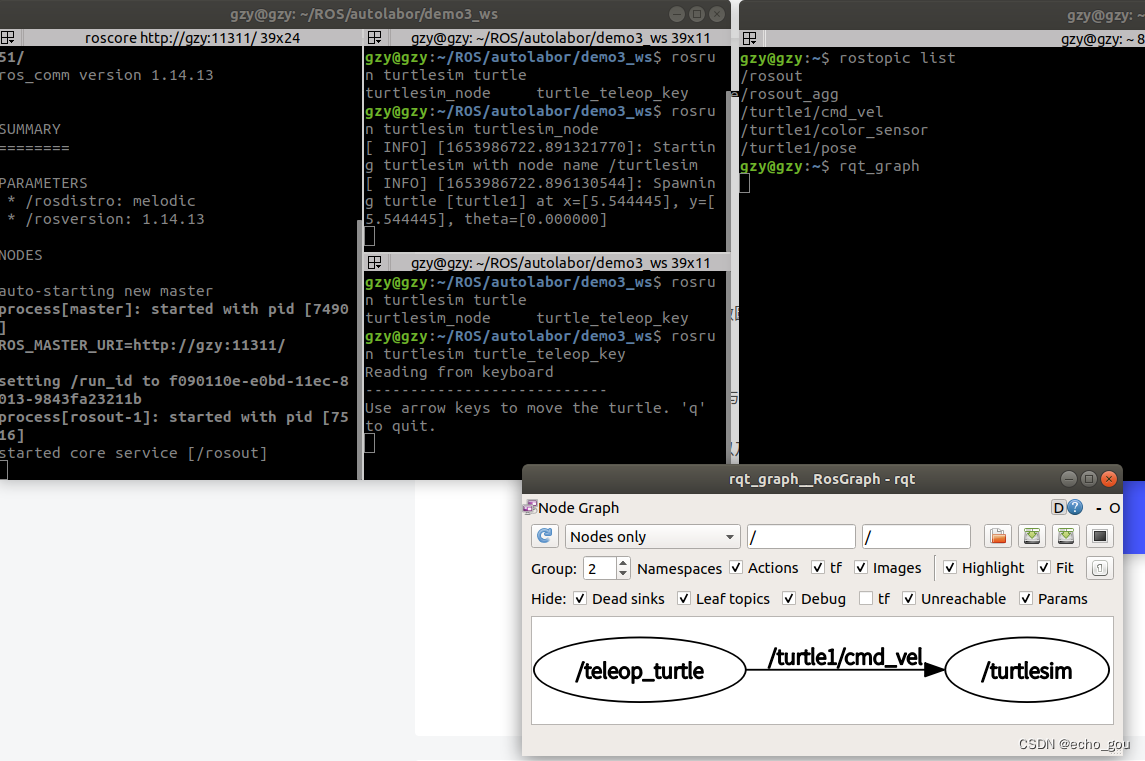 - 首先,需要启动乌龟显示节点。