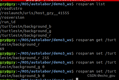 - 要通过ROS命令,来获取参数服务器中设置背景色的参数。