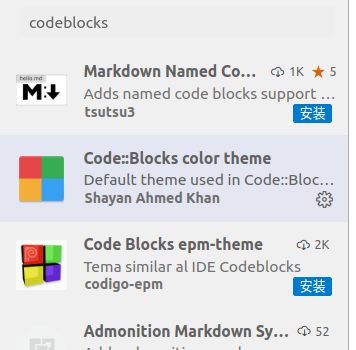 这里直接推荐想要的theme拓展,比如我喜欢codeblocks的theme,我就搜索对应的拓展安装即可