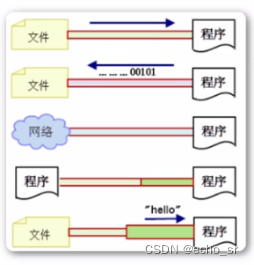 对于输入流而言,数据源就像水箱,流(stream)就像水管中流动着的水流,程序就是我们最终的用户。我们通过流(A Stream)将数据源(Source)中的数据(information)输送到数据源(Source)中的数据(information)输送到程序(Program)中。