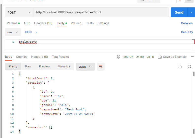 相信看到第3节的小伙伴都非常好奇,既然入参完全交给前端了,那前端到底该怎么传参做才能应对复杂的实际查询业务呢?接下来会对常见的入参规范进行介绍。第3节接口对应postman如下: