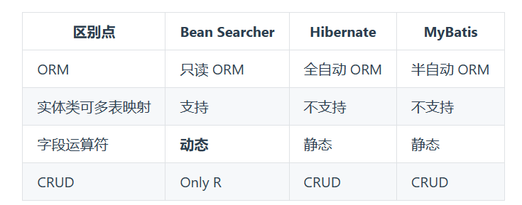 在我们的日常开发中,列表检索是一个绕不开的领域,涉及到多表连接查询、复杂查询条件的拼接,常用的框架如mybatis需要使用xml约定查询sql,不容易debug调试,mybatis-plus虽然不需要写xml,但本身不支持连接查询,需要引入第三方工具包如mybatis-plus-join,加大学习成本。这里介绍一个更轻量级,学习成本更低,开发效率更高的orm框架——bean-searcher。bean-searcher是一种针对列表检索的轻量级ORM框架,不依赖任何第三方框架例如mybaits、mybatis-plus、jpa等,可直接嵌入到项目替换掉原有的查询接口。