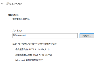 如果不导入根证书,那么本地证书启动的HTTPS服务是不可用的。导入根证书步骤如下:
