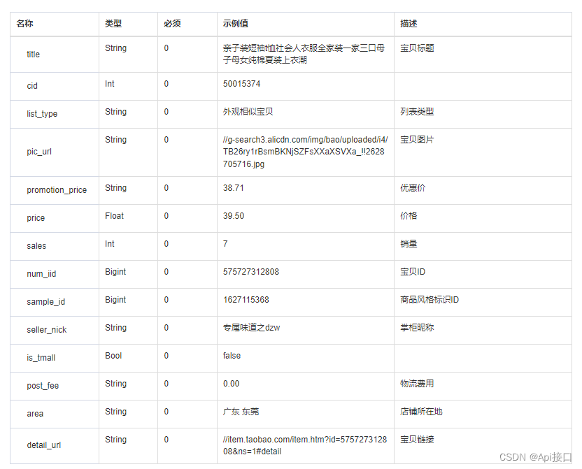 Taobao.item_search_img-按图搜索淘宝商品(拍立淘)数据接口返回值说明