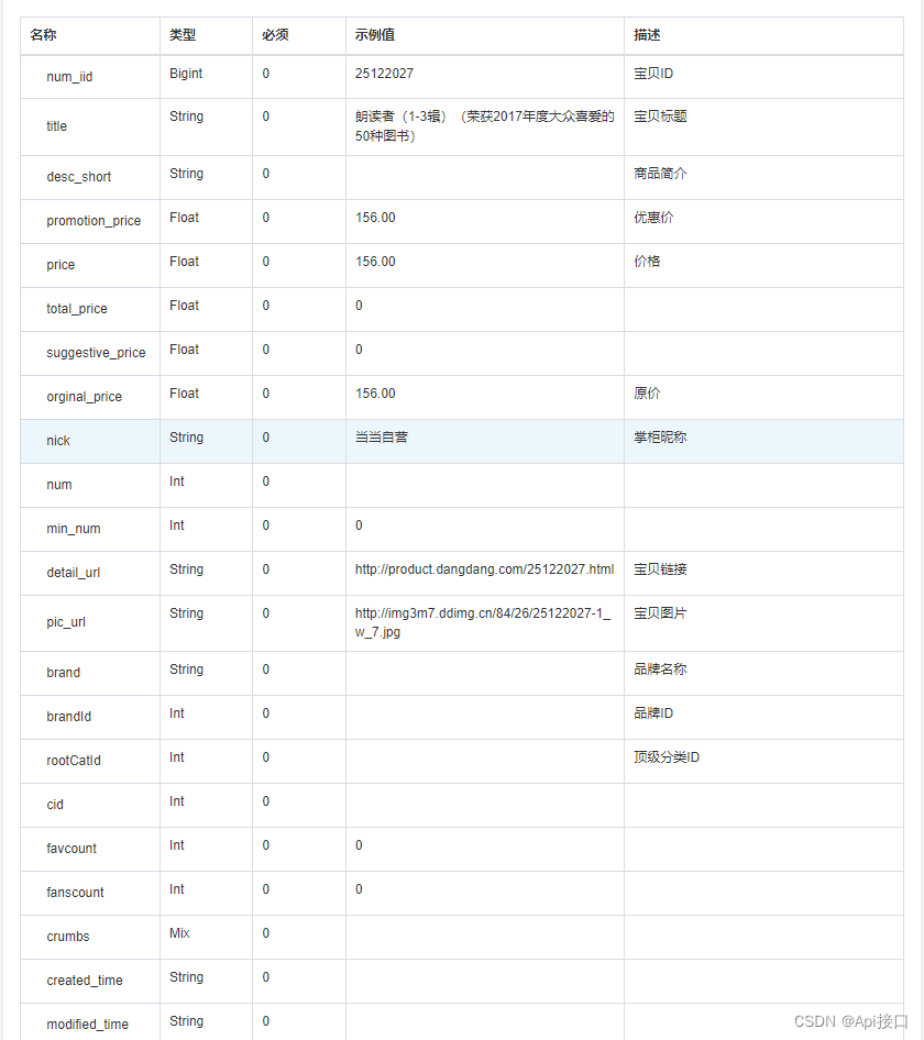 Dangdang.item_get-获得dangdang商品详情数据接口返回值说明