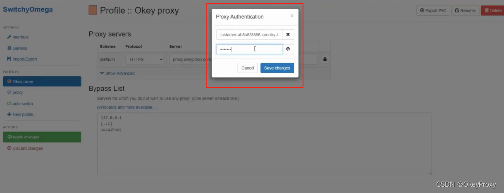 步驟5 從儀錶板複製“用戶名”和“密碼”並將其粘貼到“代理身份驗證”中,然後您可以“保存更改”。