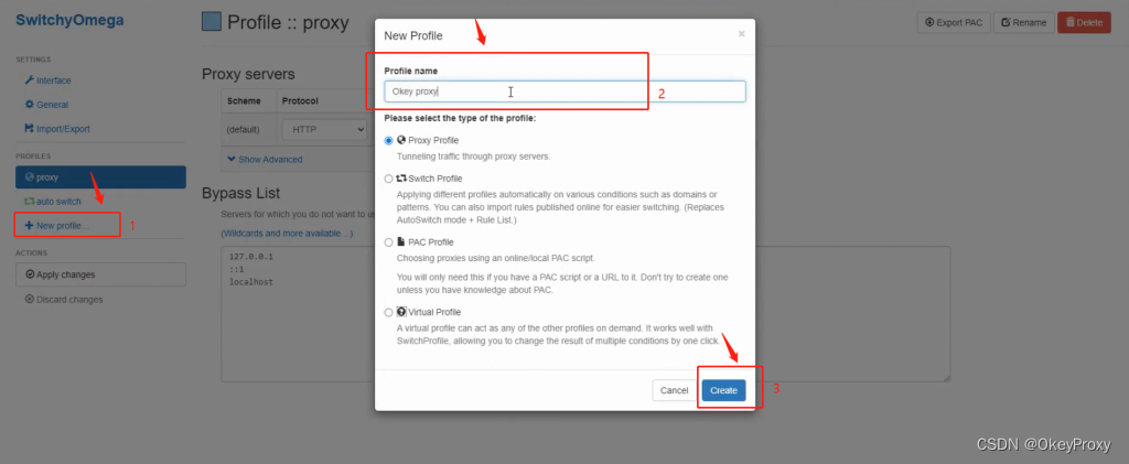 步驟1 創建一個新的配置檔並命名,然後單擊“創建”按鈕。