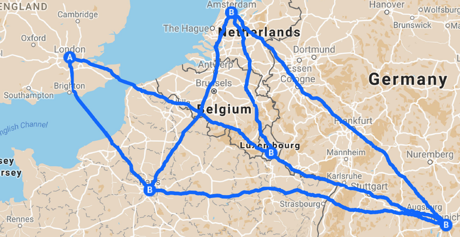 例如,当优化一个旅行销售人员通过一系列城市的路线时(TSP),需要一个约束条件,必须强制销售人员在旅行的每个阶段只能在一个地方(exactly one city),同时在多个地方是无效的。