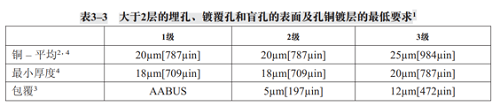 从上图中的流程上,我们可以看出,做POFV的PCB,面铜需要被电镀两次,一次是盘中孔电镀孔铜时,一次是非盘中孔电镀,另一次是其它非盘中孔的电镀。按照IPC-A-6012里面的规定,最小的过孔孔铜二级是18um,平均孔铜是20um,三级是最小20um,平均孔铜是25um。如果按照IPC二级标准,使用1/3OZ基铜生产,PCB的最终面铜的厚度在做完POFV后,大概是12um(基铜)+20um(盘中孔孔铜)+20um(非盘中孔孔铜),总的铜厚度在52um左右。