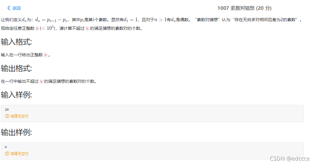 3.正确思路是判断一个数字i和i+2是不是同时是素数,如果同时是素数就result+1