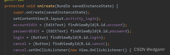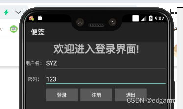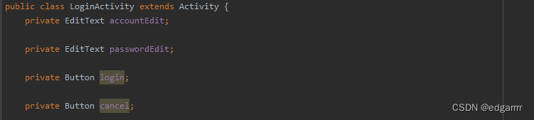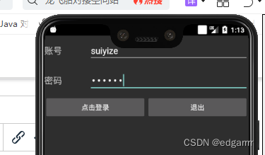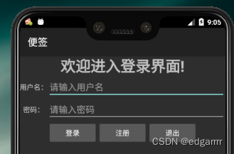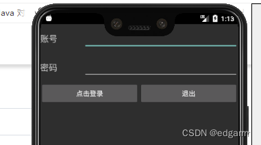 TextView//用来显示文本,如“账号”“密码”EditText//用来编辑文本,如输入账号,输入密码操作Button//用来实现点击登录和退出的控件