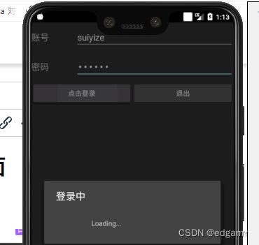 - 实现点击登录按钮(ProgressDialog为等待界面,Loading...由此实现)