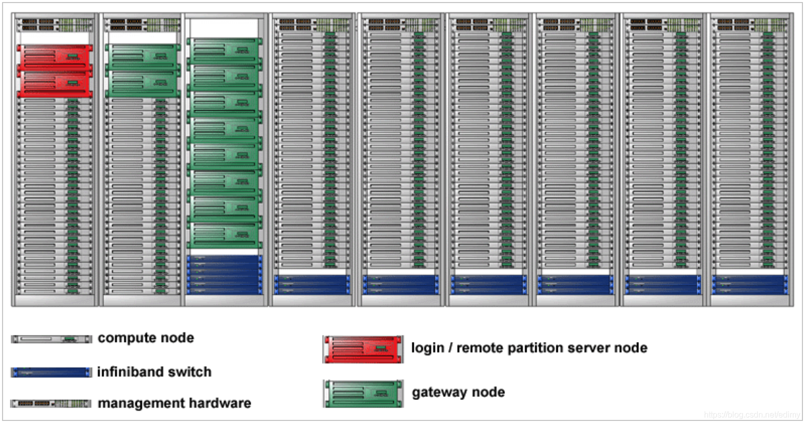 - 例如,下图显示了一个典型的LLNL并行计算机集群: