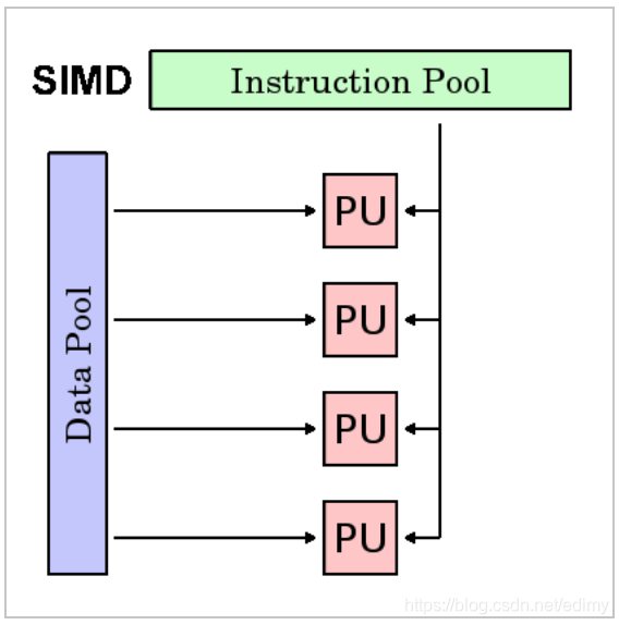 - 一条指令:所有处理单元在任何给定的时钟周期执行同一条指令