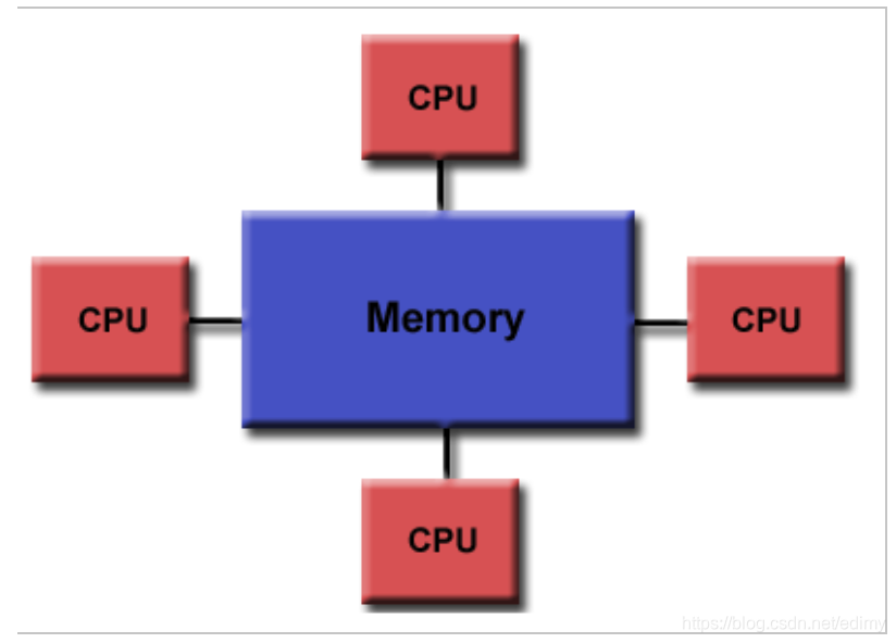 - 多个处理器可以独立运行,但是共享相同的内存资源