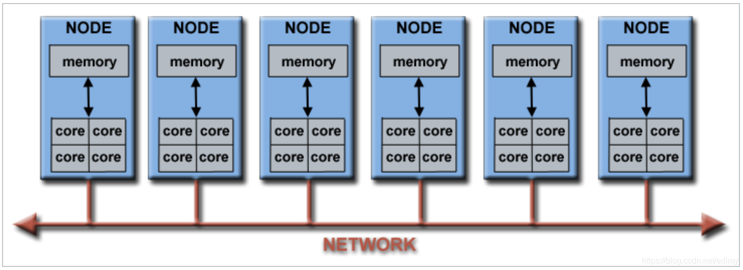 - 网络连接多台独立计算机(节点)以组成更大的并行计算机集群