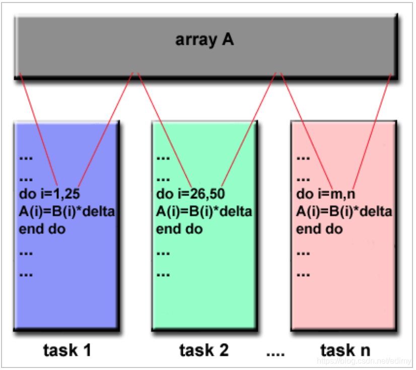- 大多数并行工作都集中在对数据集执行操作上。数据集通常组织成一个公共结构,例如数组或多维数据集。