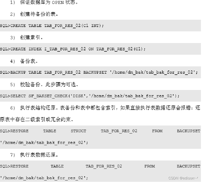 Disql 工具:联机数据备份与还原,包括库备份、表空间备份与还原、表备份与还原;