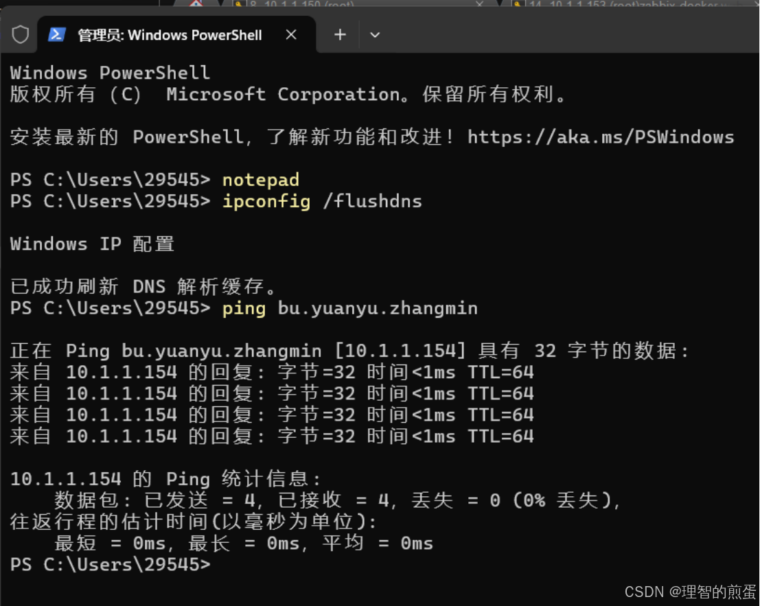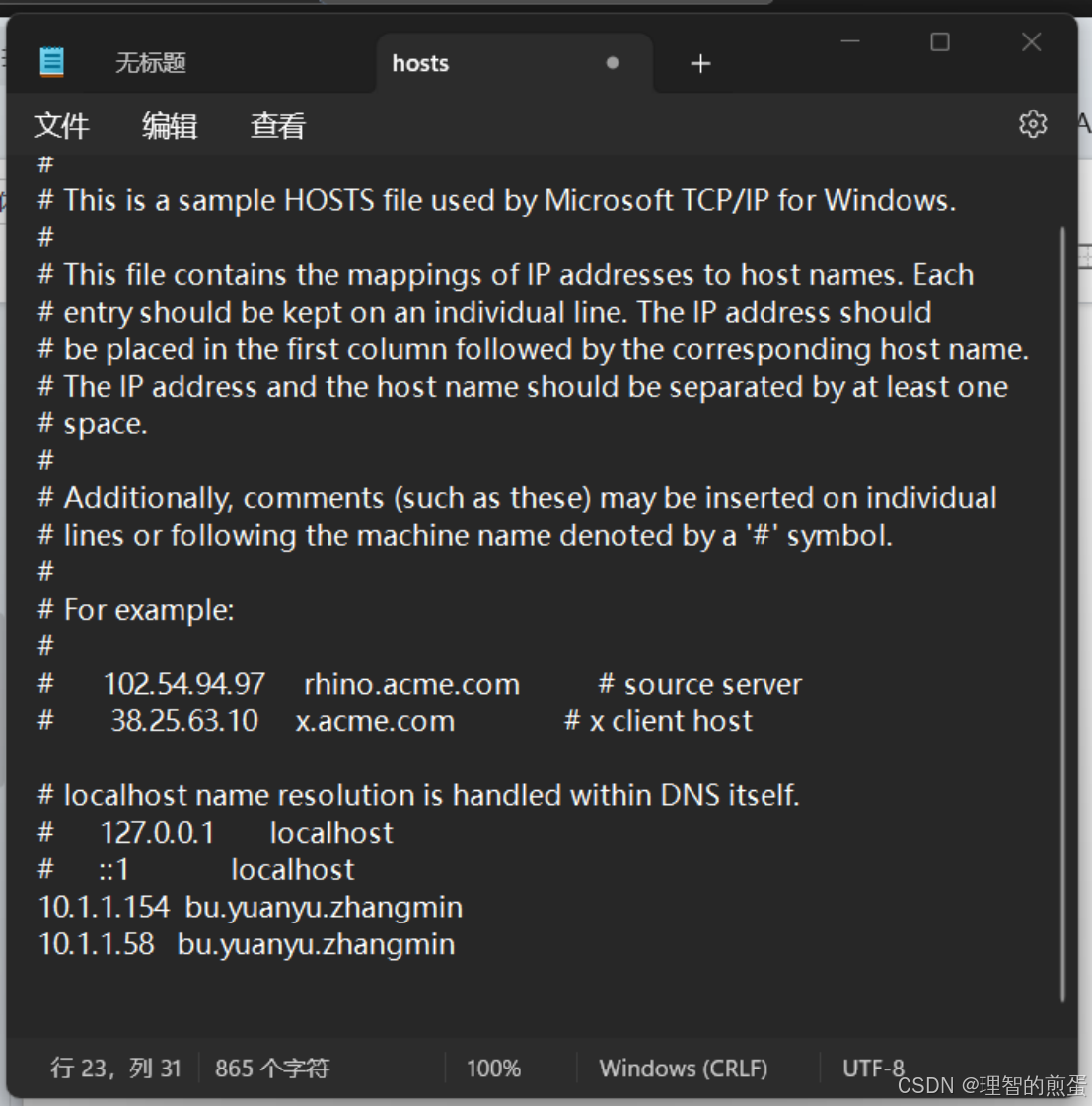 若无权限保存文档,按住WIN 键和X 键,在左下角弹框菜单里选择终端管理员,在打开的Windows Powershell界面输入notepad,按回车,就会出现记事本的界面,在记事本界面点击【文件】-【打开】,在弹出的窗口中选择路径C:\Windows\System32\drivers\etc,点击右下角【文本文档】,选择【所有文件】,点击出现的hosts文件,然后点右下角的【打开】,就会弹出hosts文件的编辑页面,编辑内容如下,编辑完成后保存并退出记事本,输入ipconfig /flushdns更新dns缓存,输入ping bu.yuanyu.zhangmin,可以ping通代表添加成功。