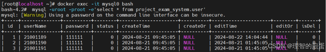 mysql -uroot -proot -e'select * from project_exam_system.user'