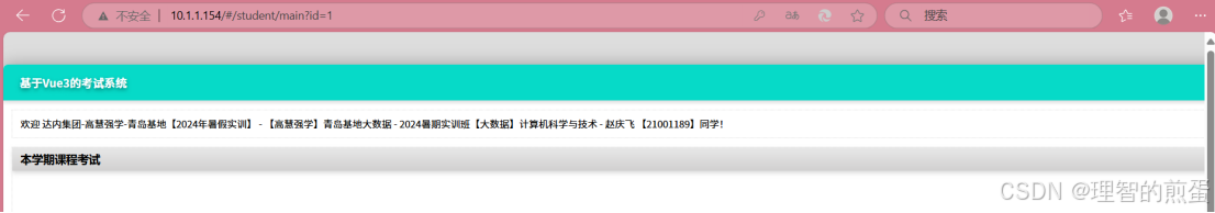 在浏览器中输入http://10.1.1.145,出现学生考试系统登陆界面,在实现登录的时候,出现问题后端异常,因为后端还没有部署
