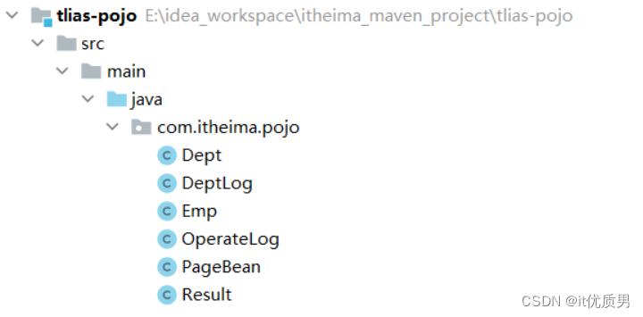 1. 创建maven模块 tlias-pojo,存放实体类
