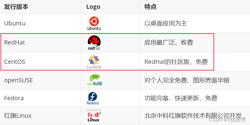 3.Linux 分为内核版 和发行版 (RedHat,CentOs,红旗)