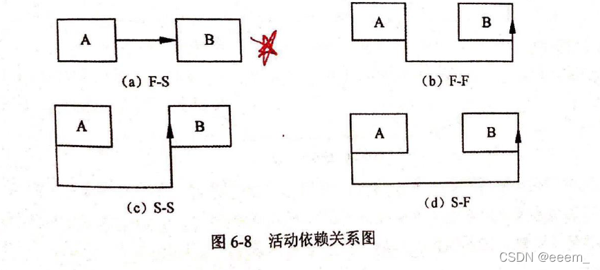 定义:活动之间的依赖关系可能是强制的或选择性的,内部或外部的