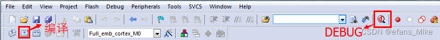 在KEIL中编译源代码,点击DEBUG,然后点击全速运行,如下图所示: