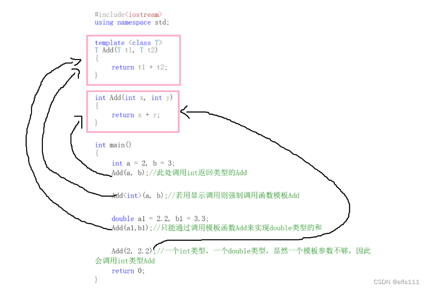 Add<int>(a, b);//若用显示调用则强制调用函数模板Add