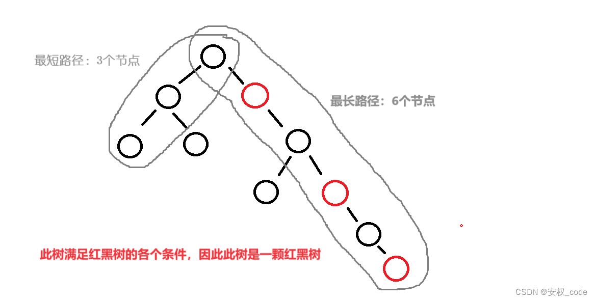 5、每条路径的黑色节点都相同。