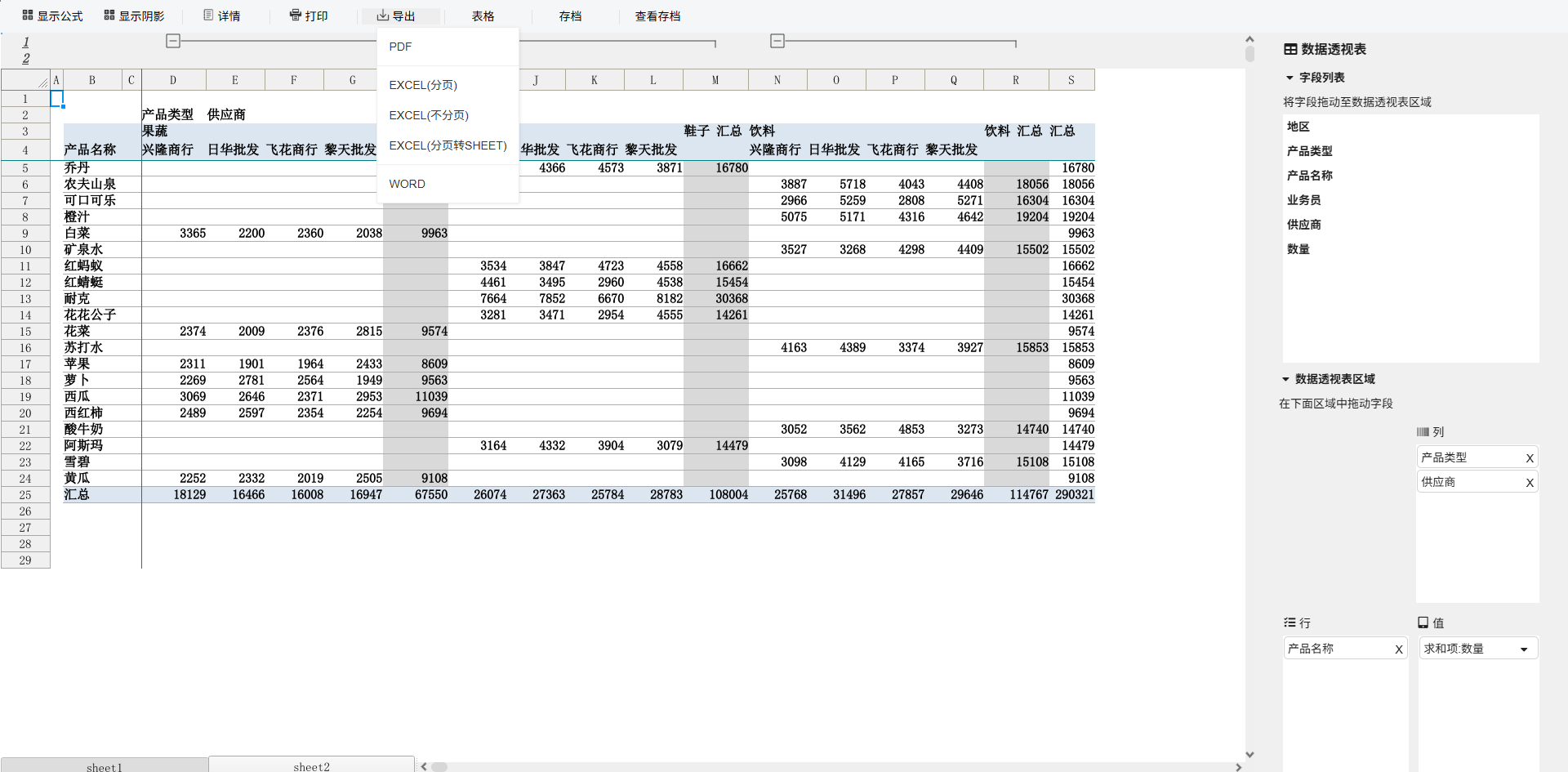 在报表输出方面,盈帆报表支持多种格式导出,包括PDF、EXCEL、WORD等常用格式。系统还支持多种浏览器无需插件即可打印,并可以预设置纸张类型和尺寸,满足不同场景下的输出需求。