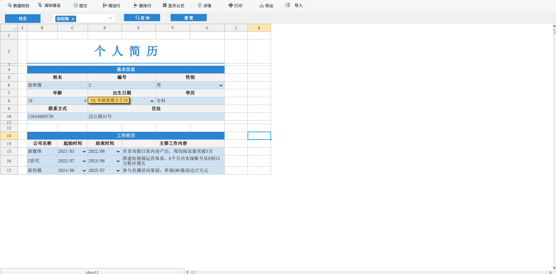盈帆报表提供了完善的数据填报功能,支持单数据源、多数据源、单表单、多表单的数据校验与填报。用户可以通过报表界面直接录入数据,系统支持自定义数据逻辑进行校验,确保数据的准确性和完整性。