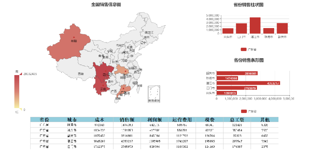 根据地图报表制作方式制和子报表的制作方式,完成效果如下。