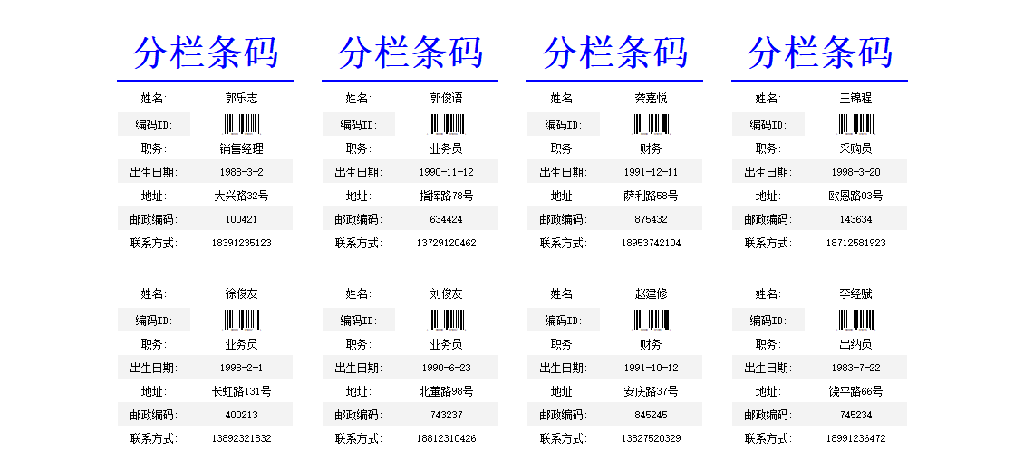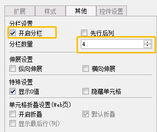 选中[ds1][姓名]字段单元格,在右侧设置“其他”中的“开启分栏”、“分栏数量”,效果如下图: