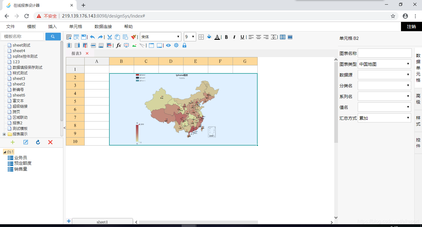 说明:在报表中,使用图表展示数据会更清晰明了。本课程以“销量”表为例,讲解如何用盈帆报表做图表。